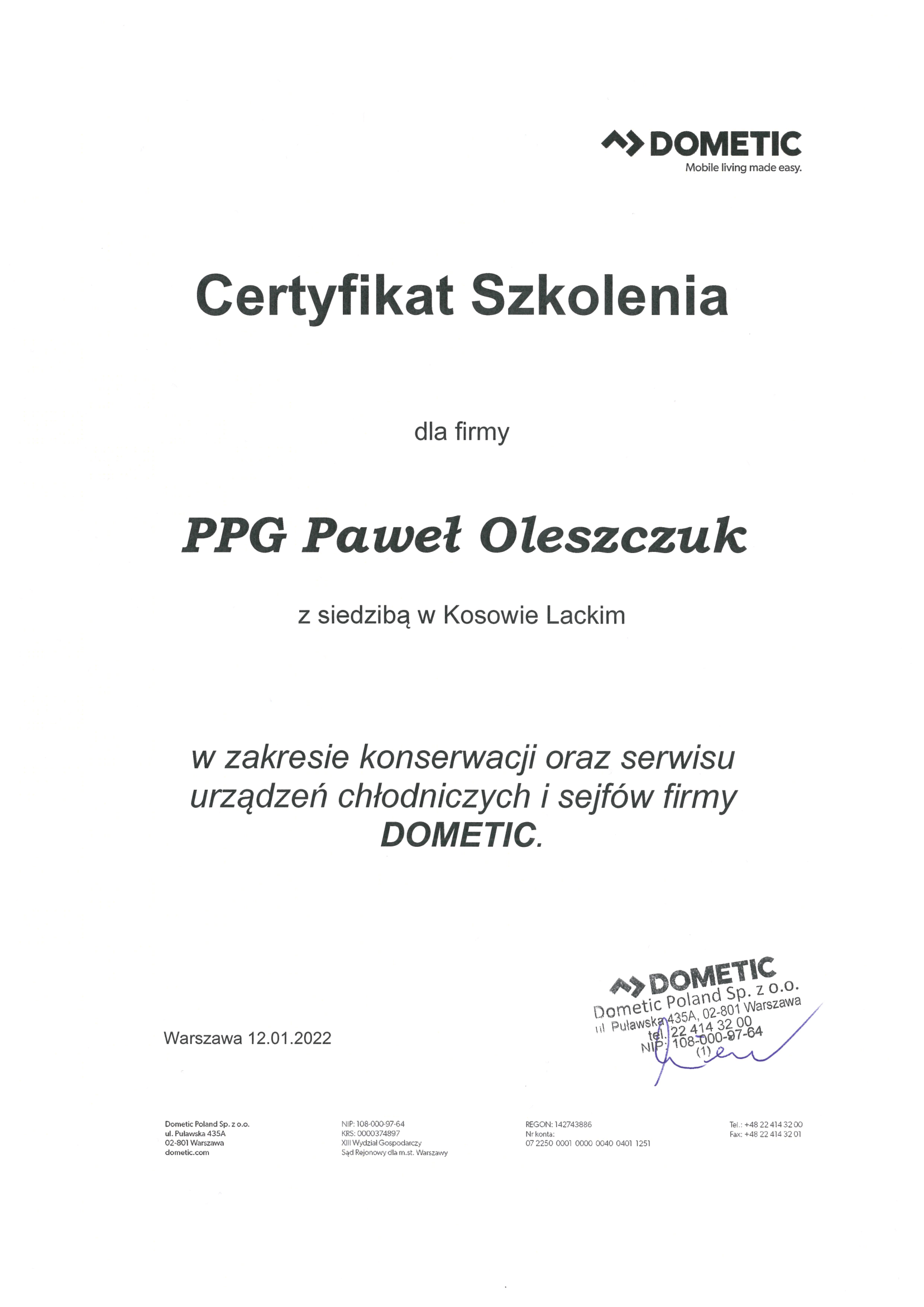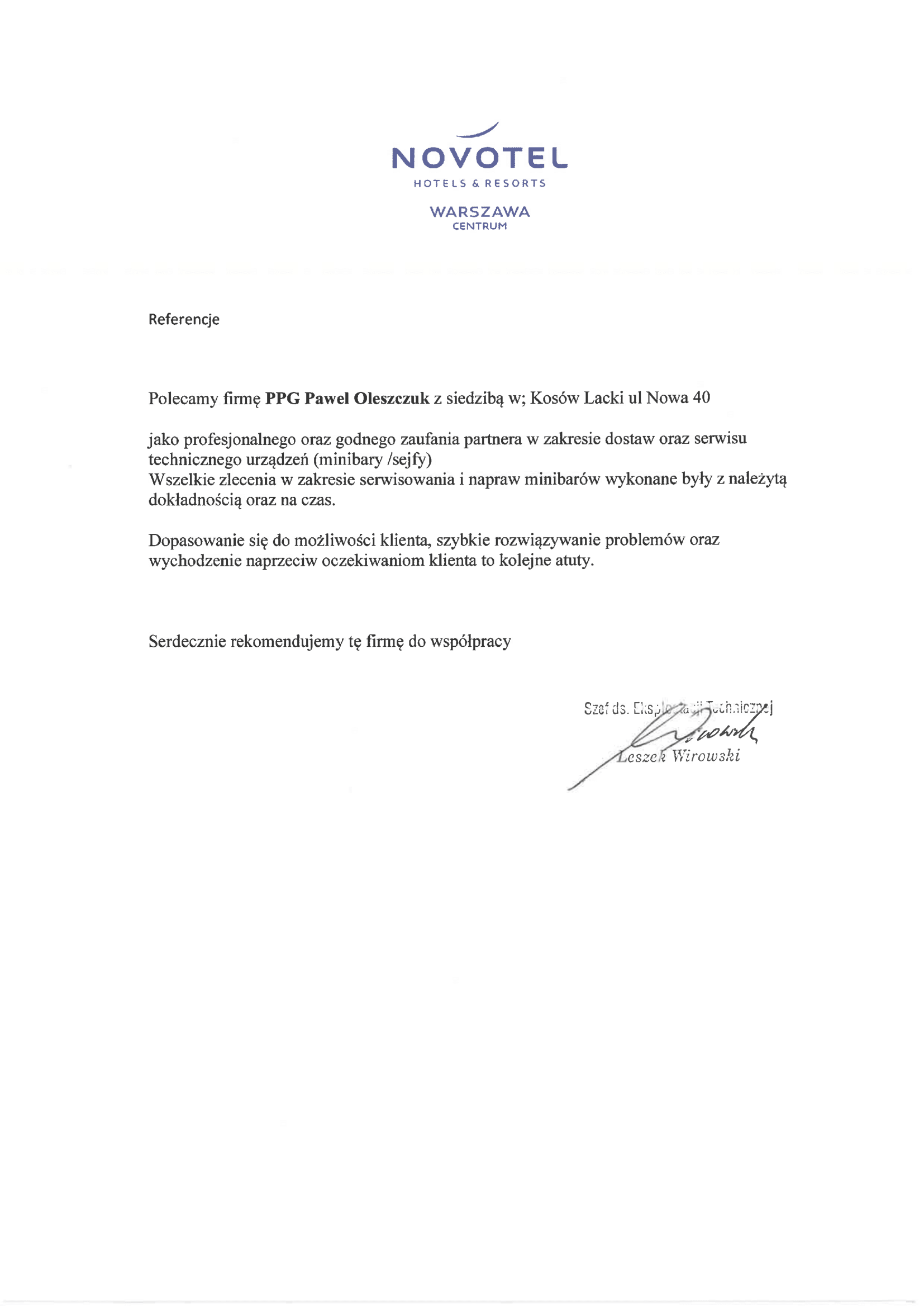 Dziękujemy Zarządowi obiektu za zaufanie i wybór najwyższego możliwego standardu.