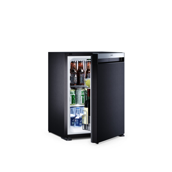 Model Dometic HiPro Evolution N40S wyróżnia się nowoczesnym frontem z czarnej stali nierdzewnej, czystym wzornictwem oraz dobrze zorganizowanym, atrakcyjnie oświetlonym wnętrzem z dwiema półkami z hartowanego szkła o regulowanej wysokości, a także dwiema półkami na drzwiach.Nadaje się do użytku wolnostojącego lub do wbudowania w mebel dzięki standardowemu zawiasowi przesuwnemu quick-fix.
