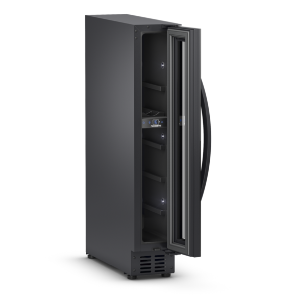 Opis produktu Kompresorowa chłodziarka do wino ze szklanymi, bezramowymi drzwiami, 7 butelek