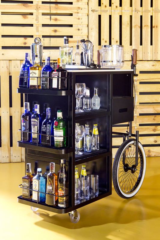 • Z boku trzy okrągłe półki ze zintegrowanymi dodatkowymi listwami ochronnymi. Do napojów destylowanych. Wymiary: 45 x 10 cm